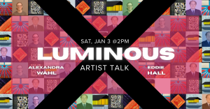 Enjoy an afternoon listening to Alexandra Wahl and Eddie Hall, the artists behind Luminous, discuss their creative process, inspirations, and challenges as creatives. Free to attend, light refreshments will be served. ABOUT THE ARTISTS: Alexandra Wahl began quilting when she was nine and sewing has always played a role in her life—her high…