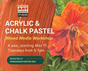 RegisterInstructor: Sage Neighbors 4 week workshop, starting March 17th Tuesdays from 5-7pm $145 ($130.50 Members’ Price) Get creative with this 4 week mixed media class taught by local artist Sage Neighbors! Students will play with color, texture, blending, and technique while layering chalk pastel over acrylic paint for a vibrant and unique look. Perfect for…